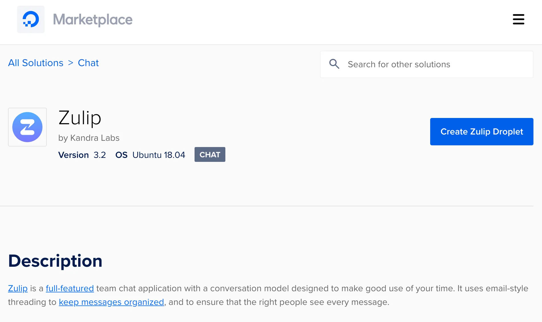 That’s why we’ve teamed up with DigitalOcean to offer a one-click Zulip installer in the DigitalOcean Marketplace, making it even easier to self-host Zulip.