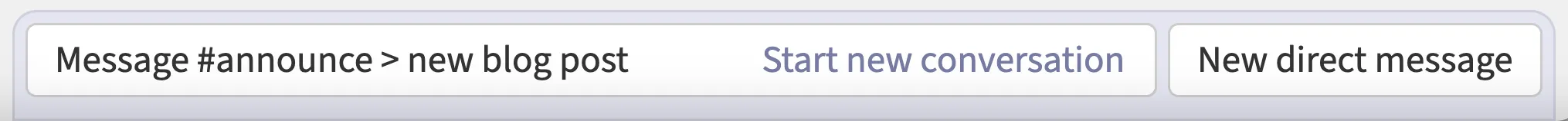 The Start new conversation button conveniently starts a new topic or direct message thread, depending on context.
