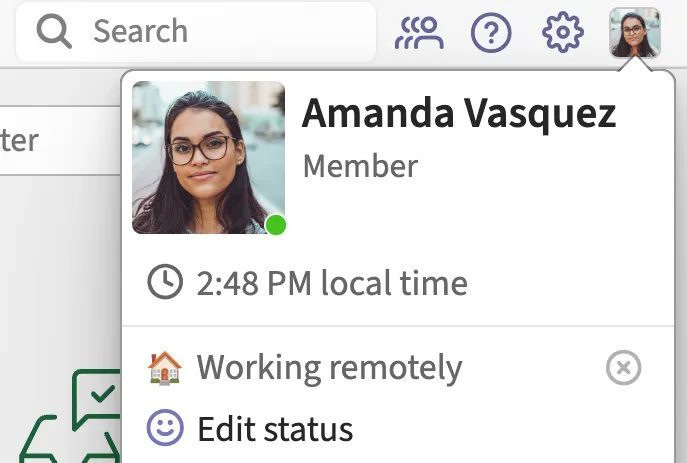 A redesigned top navigation bar, with an easier to find search, and access to a new personal settings menu and a new help menu. The personal settings menu makes it convenient to manage your status, profile, and other preferences.