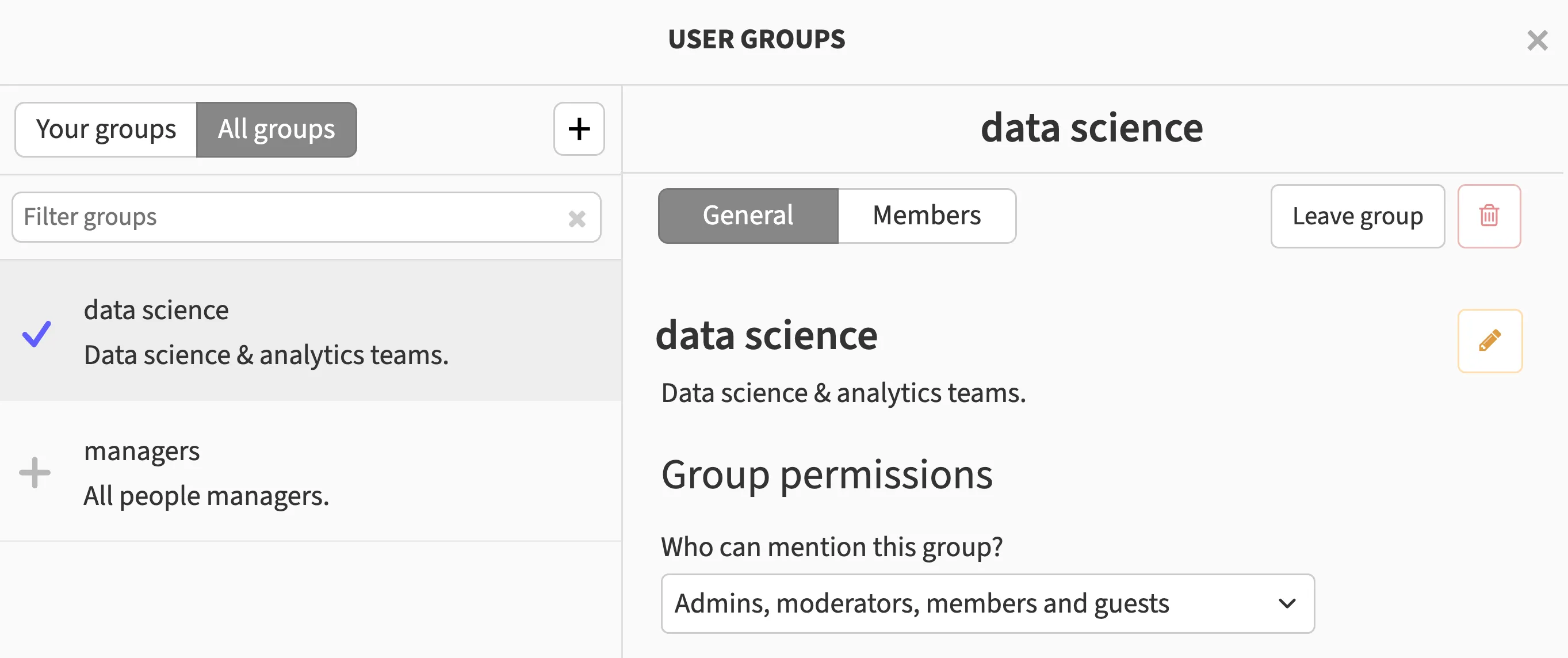 There is a brand new UI for creating and managing user groups, which feels just like the stream management UI. The design for managing personal stream subscriptions and notification settings has also been improved.