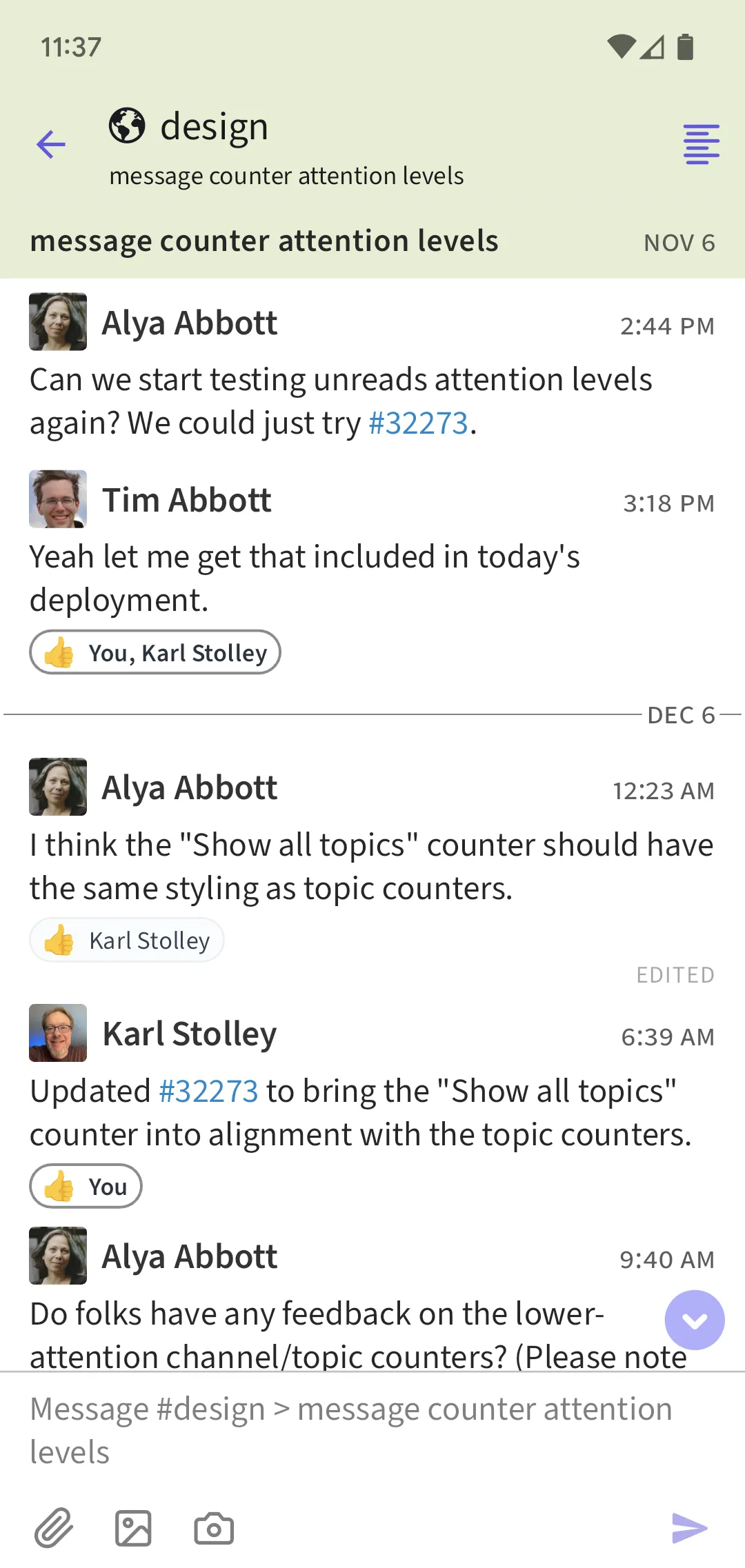You’ll also see the app has a fresh new design, matching the changes we’ve made in the Zulip web and desktop apps in recent years: