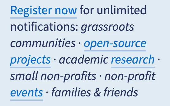 We proudly sponsor free Zulip Cloud Standard hosting for more than 2,000 open-source projects, non-profits, educational institutions, academic research groups, and other communities.