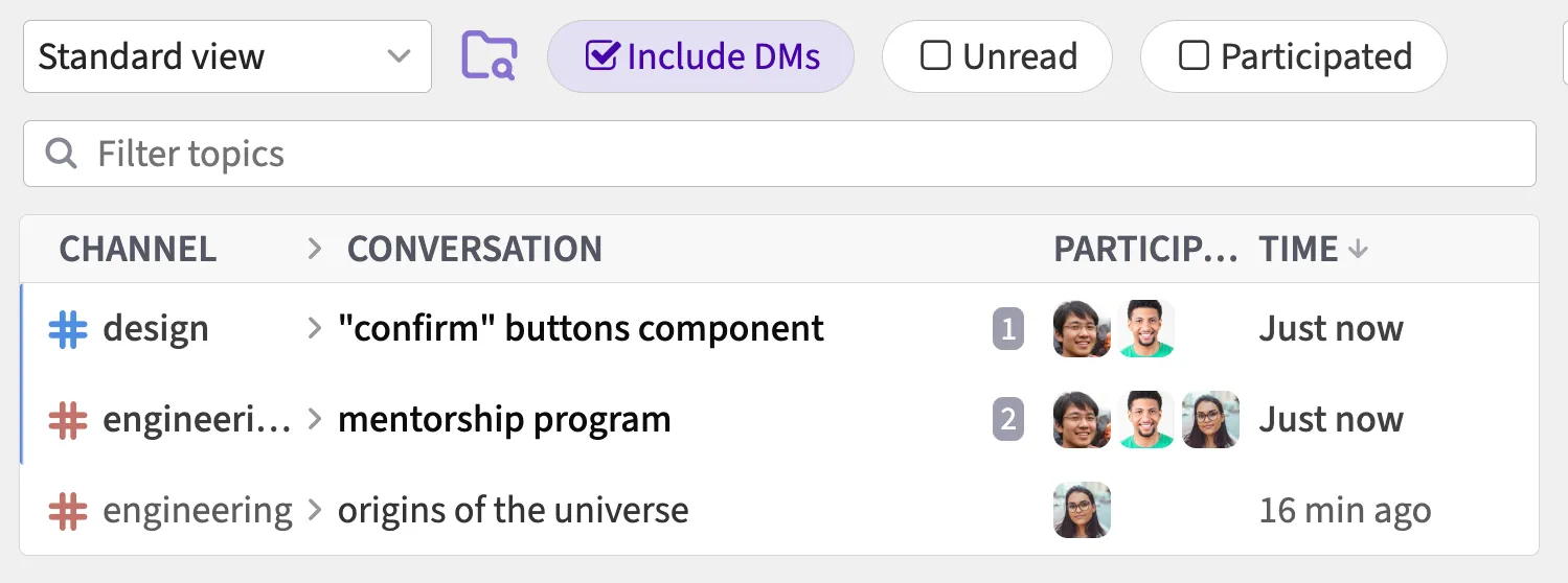 The recent conversations view has been redesigned, with a cleaner, friendlier look and a new folder filter.